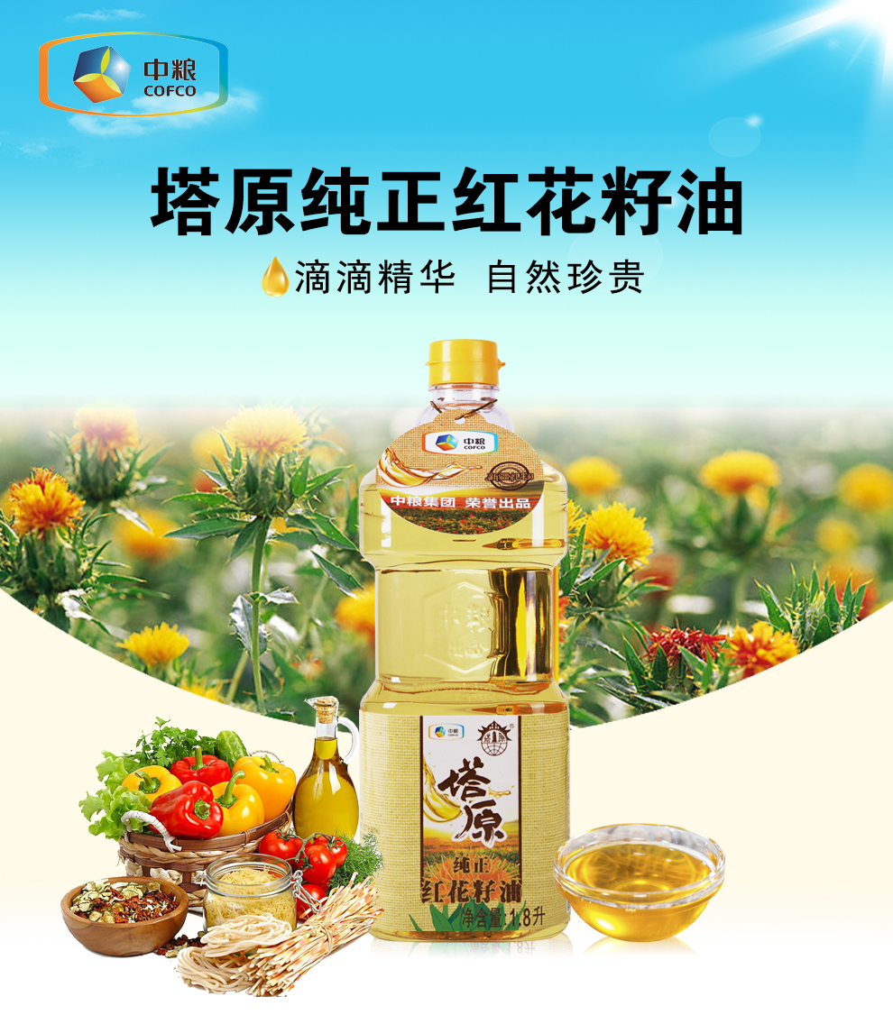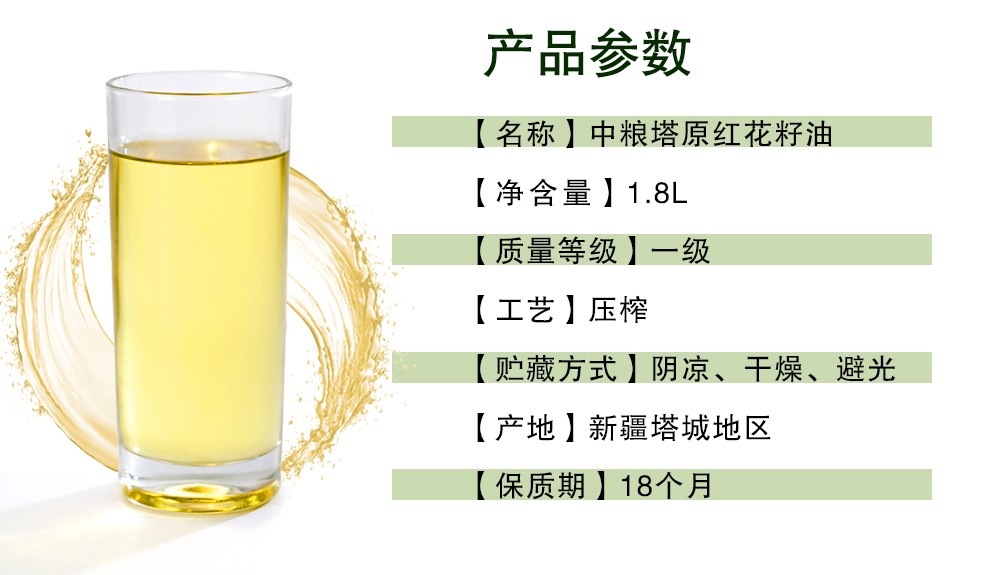 商品名称:中粮塔原纯红花籽油1.8L